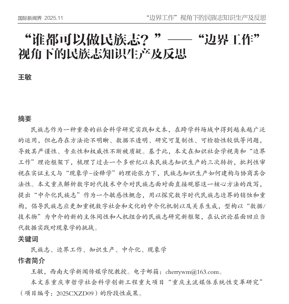 成人网 王敏教授在权威期刊《国际新闻界》发表重要学术成果