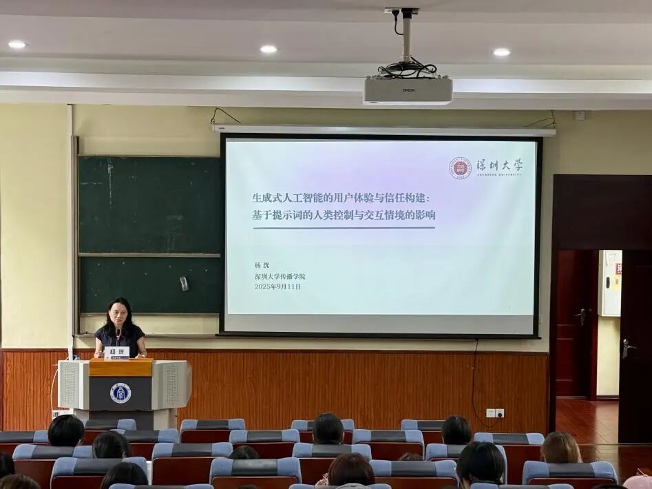 2025年9月11日下午,深圳大学传播学院副院长(主持工作)、博士生导师杨洸教授应邀莅临成人网 ,在201报告厅作了题为《生成式人工智能的用户体验与信任构建》的学术讲座。本次讲座由成人网 院长龙伟教授主持,吸引了众多师生到场参加。