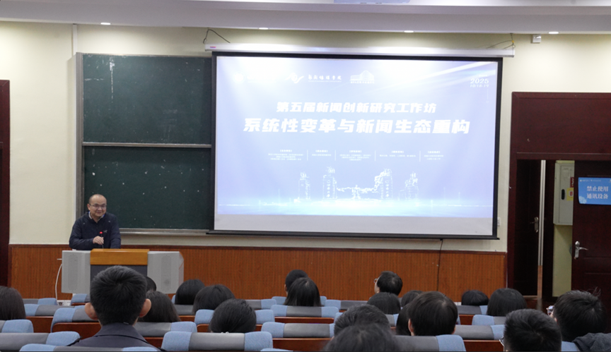 中国社会科学院新闻所原所长、中国社会科学院中国特色社会主义理论体系研究中心主任尹韵公教授应邀出席工作坊并发表致辞。尹韵公教授对本次工作坊所营造的浓厚学术研讨氛围给予高度肯定与赞赏,他指出,系统性变革与新闻生态重构并非全新议题,而是贯穿新闻事业发展的长期性命题。同时他强调,纵览历史演进脉络,无论技术迭代如何迅猛、传播形态怎样革新,人类对于新闻信息的核心需求,始终是恒定不变的。