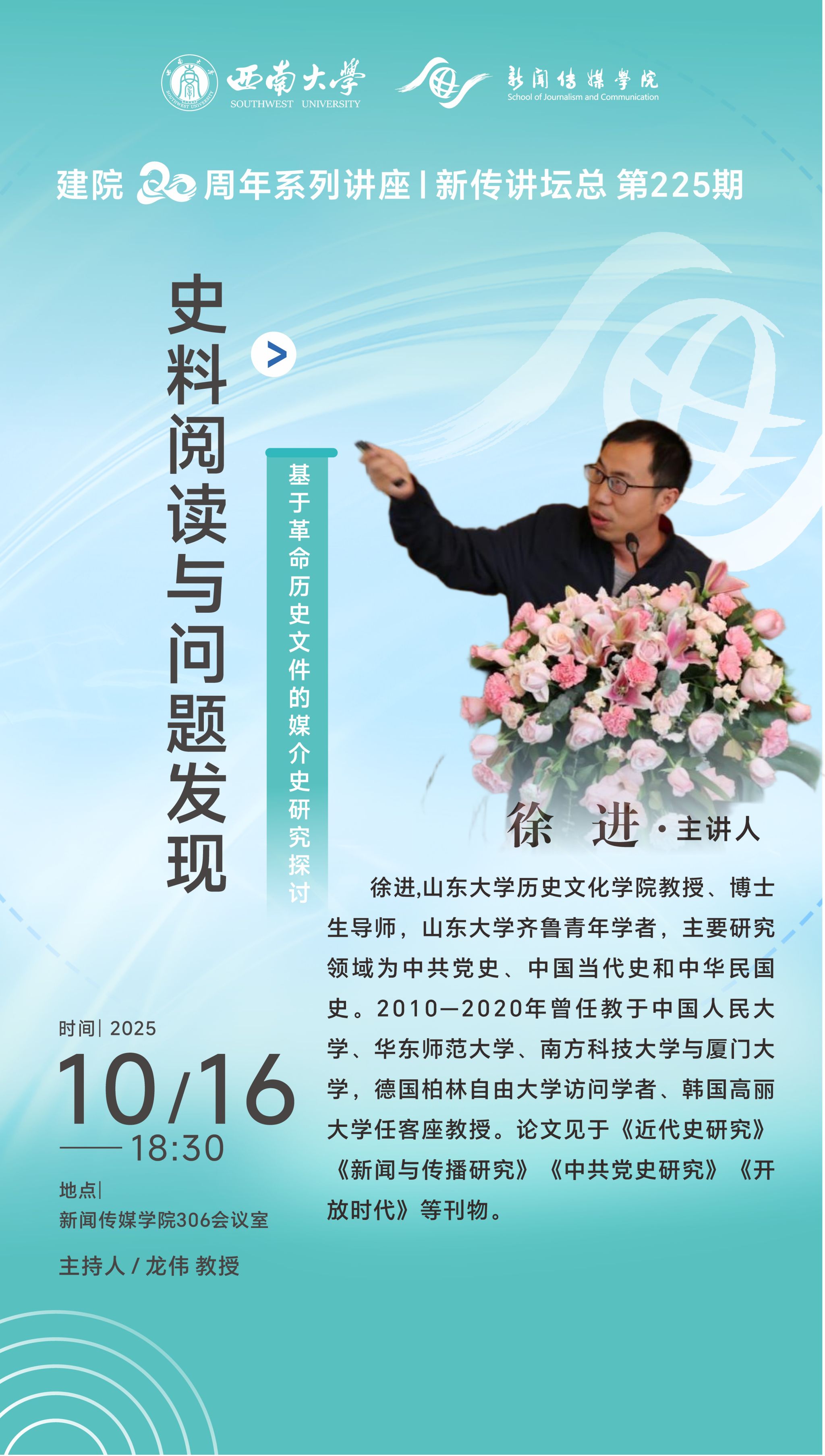 建院20周年系列讲座 | 新传讲坛总第225期 | 徐进:史料阅读与问题发现—基于革命历史文件的媒介史研究探讨