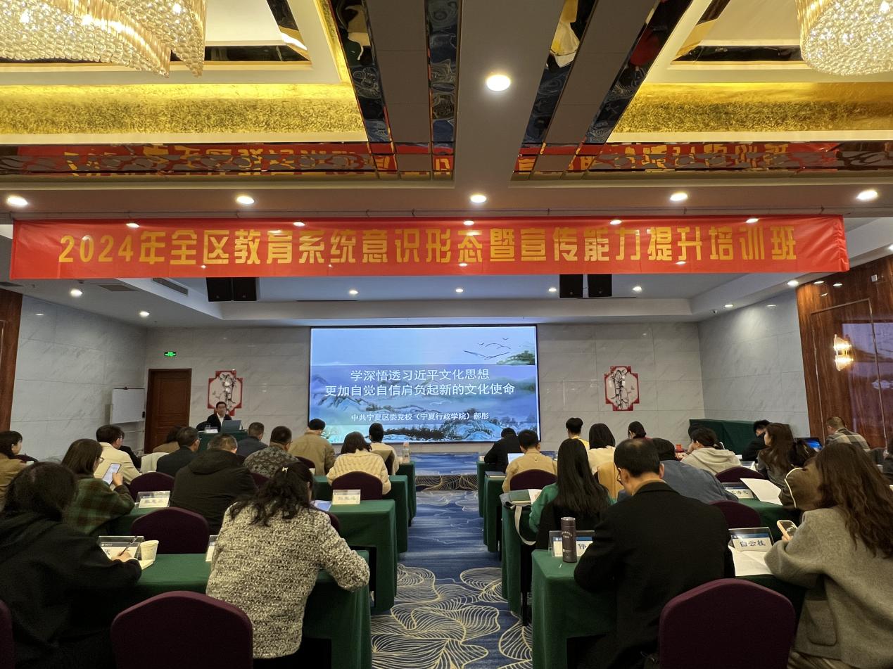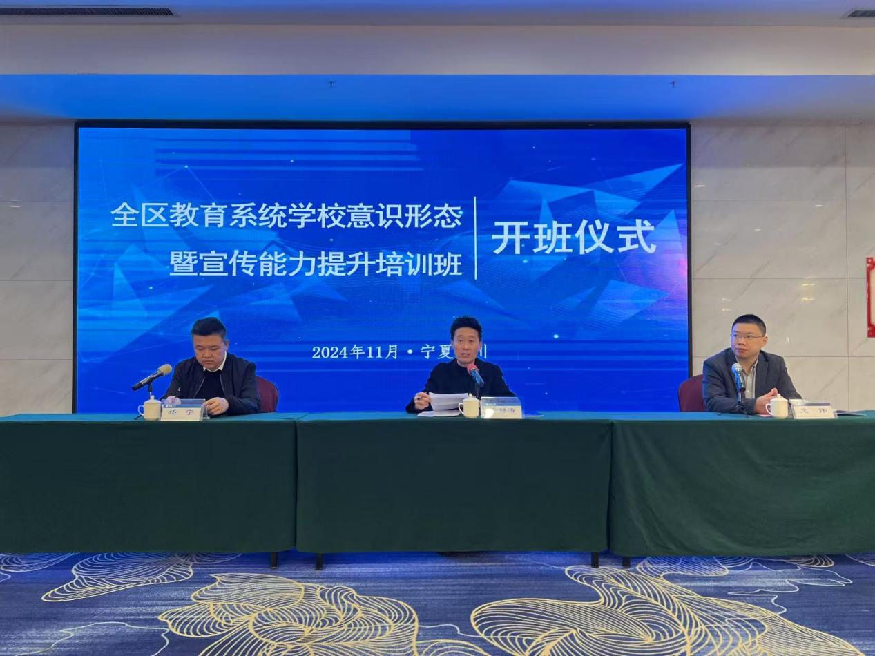 2024年11月6日上午,成人网 承办的宁夏区培项目“2024全区教育系统意识形态暨宣传能力提升培训班”在银川艾依明珠饭店顺利开班。宁夏电化教育中心(教育电视台)主任台长张静涛、成人网 院长龙伟、宁夏教育电视台领导及相关部门人员和全体参训学员出席了开班仪式,仪式由宁夏教育电视台副台长杨宁主持。此次培训地点在银川,是成人网 首个“送教上门“的社会服务项目,标志着学院的社会服务开启了”走出去”的新征程。