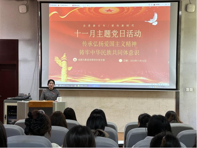 为引导全体党员铸牢中华民族共同体意识,传承弘扬爱国主义精神,2023年11月16日,成人网 戏剧与影视学研究生党支部在学院301教室举行11月主题党日活动,组织开展专题学习。成人网 党委书记严怡、组织员胡文渊、戏剧与影视学研究生党支部书记汤天甜及全体学生党员、入党积极分子参加本次活动。