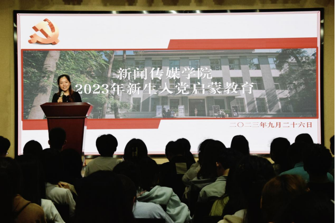入党启蒙教育宣讲会上,组织员胡文渊还向全体2023级新同学介绍了学院党委基本情况,展示了学院党建特色品牌活动,就入党流程、入党申请书撰写规范等进行讲解介绍。