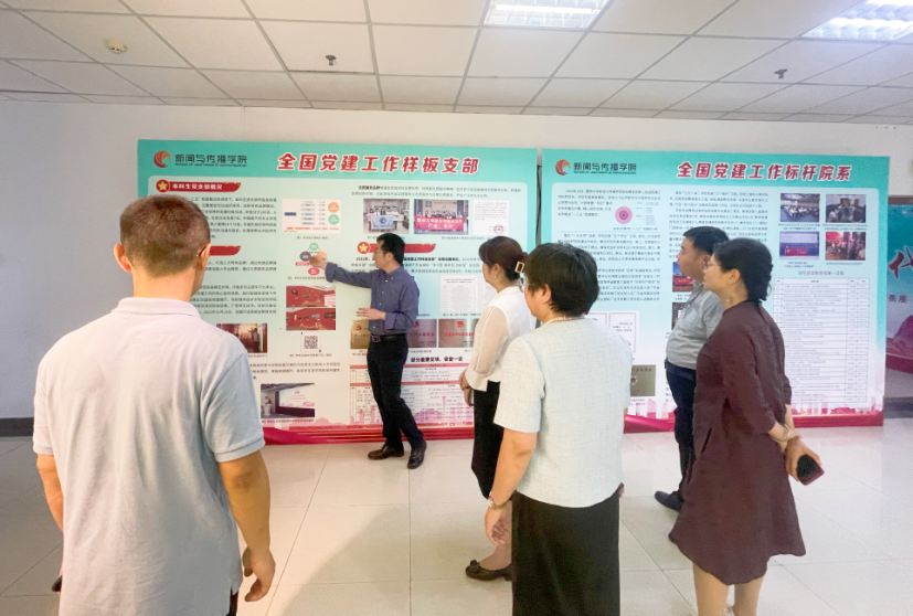 在暨南大学新闻与传播学院,调研组与学院党委书记刘涛、院长支庭荣、党委副书记张建敏等进行交流座谈,深入学习全国党建工作标杆院系、全国党建工作样板支部、全国高校黄大年式教学团队等优秀建设经验,重点围绕党建引领事业发展、瞄准国家战略需求加强学院顶层谋划,一体化推动学科建设、人才培养、科学研究、国家级精品项目打造等方面的建设经验进行交流学习。