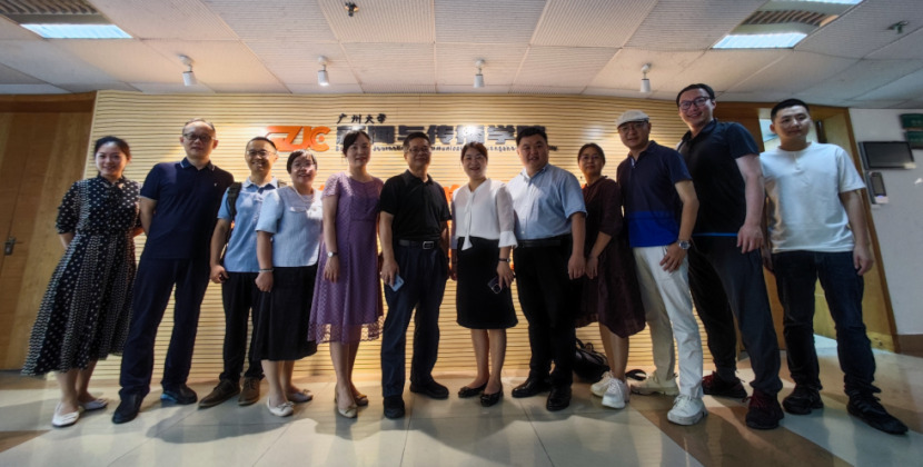 在广州大学新闻与传播学院,调研组与学院院长田秋生、副院长张爱凤、学科系部负责人等进行交流座谈,围绕学科融合发展、国一流专业建设、人才创新培养模式、党建思政品牌建设、校地合作等方面进行交流座谈。