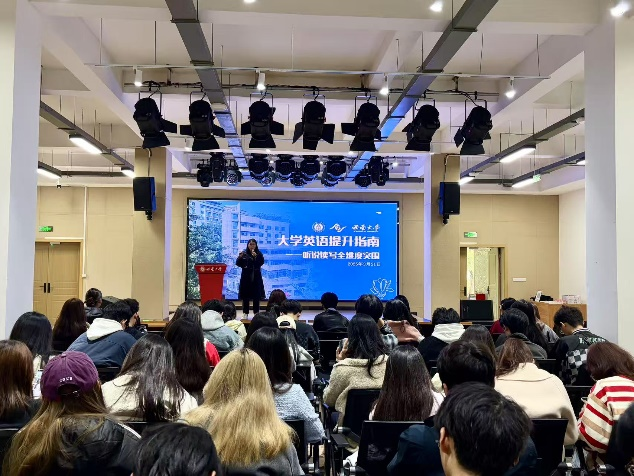 3月21日,学院举办“大学英语提升指南--听说读写全维度突围”讲座,特别邀请在英语教学领域经验丰富的新东方朱婉珺老师担任主讲嘉宾,吸引了学院众多学生前来聆听。此次讲座旨在帮助同学们掌握更有效的英语学习方法,提升英语综合应用能力。