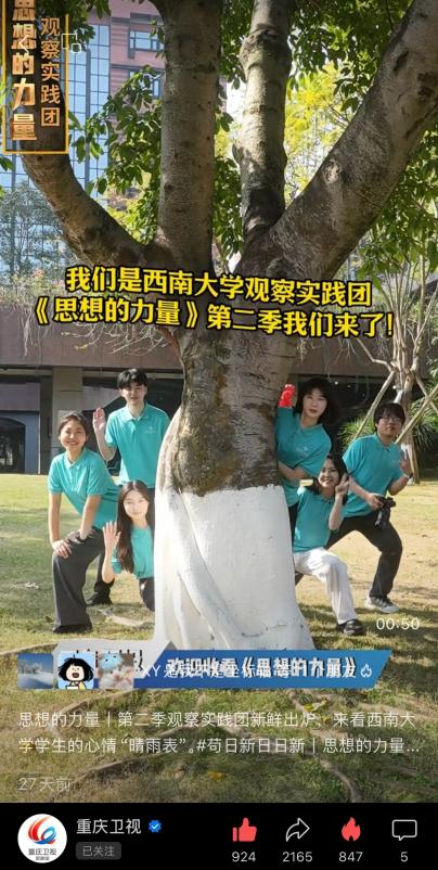 《思想的力量》第二季特别设置了“观察实践团”,由成人网 和马克思主义学院学生组成,以“节目专家+高校学子”探访的方式深入案例发生地进行实地探访,产出与大屏端内容有机结合的竖屏短视频,实现大小屏联动,开辟了《思想的力量》新的传播阵地。
