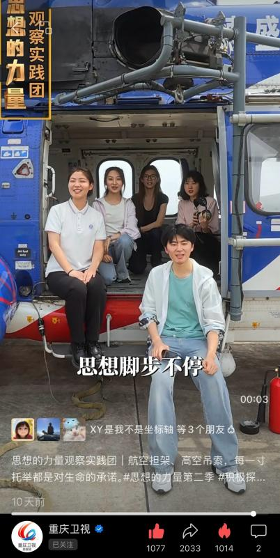 此次录制从3月底开始,同学们先后前往西部国际传播中心、南岸区南山街道放牛村、重庆应急航空救援总队、南川区潮汐摊位等地,以独特的方式深度参与节目录制。从理论课堂的思辨讨论,到节目录制现场的思想碰撞,再到一线的实践探索,学院师生完成了一次屏幕学理论、现场提技能、实践悟成长的蜕变之旅。